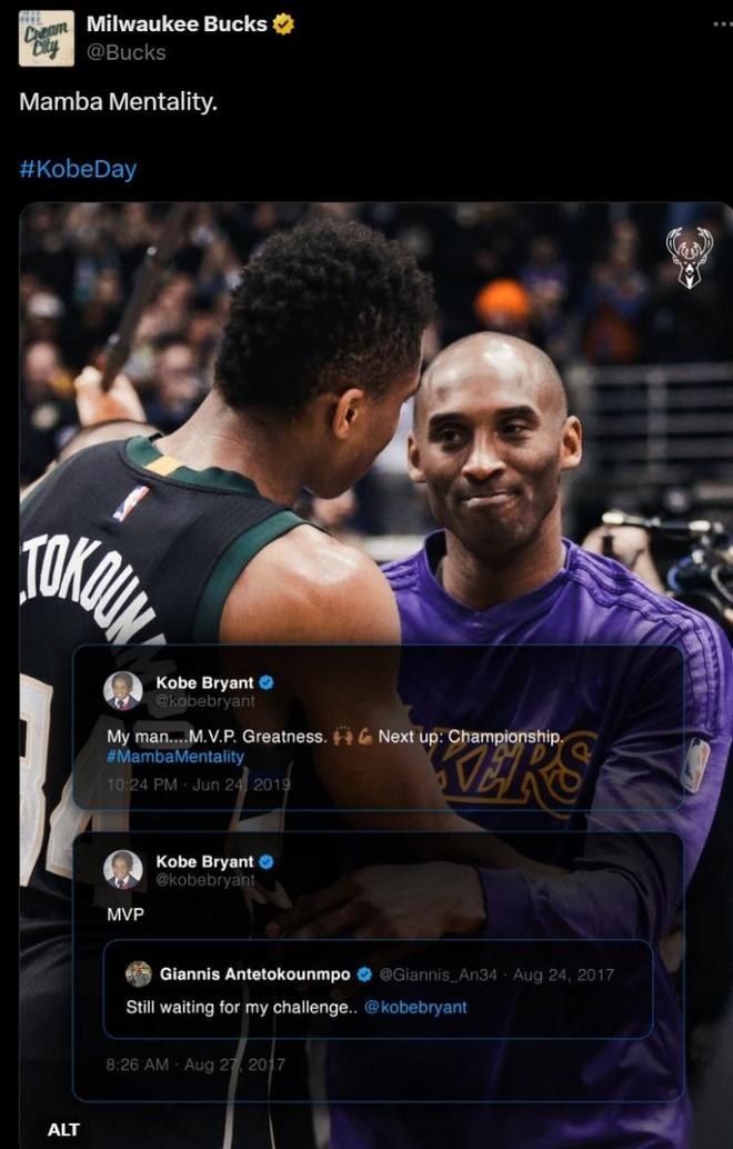 字母哥获得MVP后,科比为其设立挑战:赢下总冠军