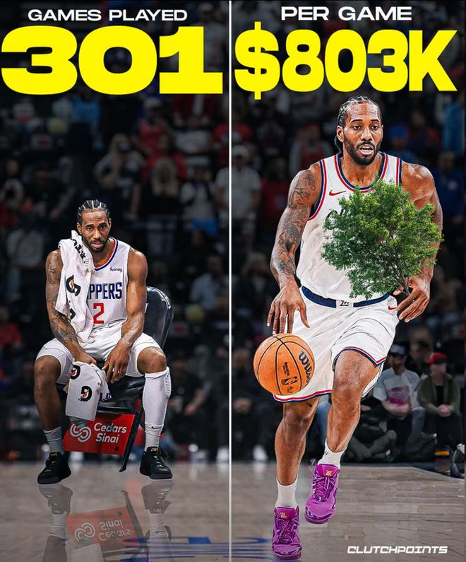 美媒列莱昂纳德在快船已赚超2.4亿美元 仅出战301场 每场净赚80万